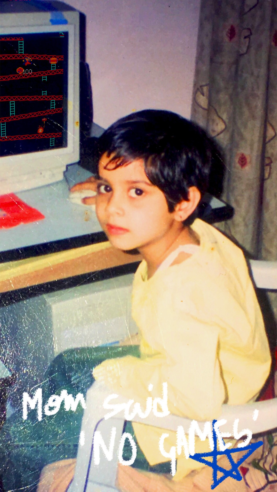 I was fascinated by video games since a very young age and would just get away to play games on the computer when mum went for her afternoon nap. This photo is from one of the times I was caught. I didn't love them as much as I was drawn and addicted to them. At some point in high school, I started taking my brother's PSP to school and once again when I was caught my mum gave me a bet to score 95% in my boards and she would buy me anything I wanted (all cash). I scored and got a PS4; I still have that with a stack of CDs I spent 8-9 hours a day playing and finishing. The story, the visuals and the experience kept me engaged and how so much so that at one point I wanted to be a game designer and a part of the Call of Duty design team.